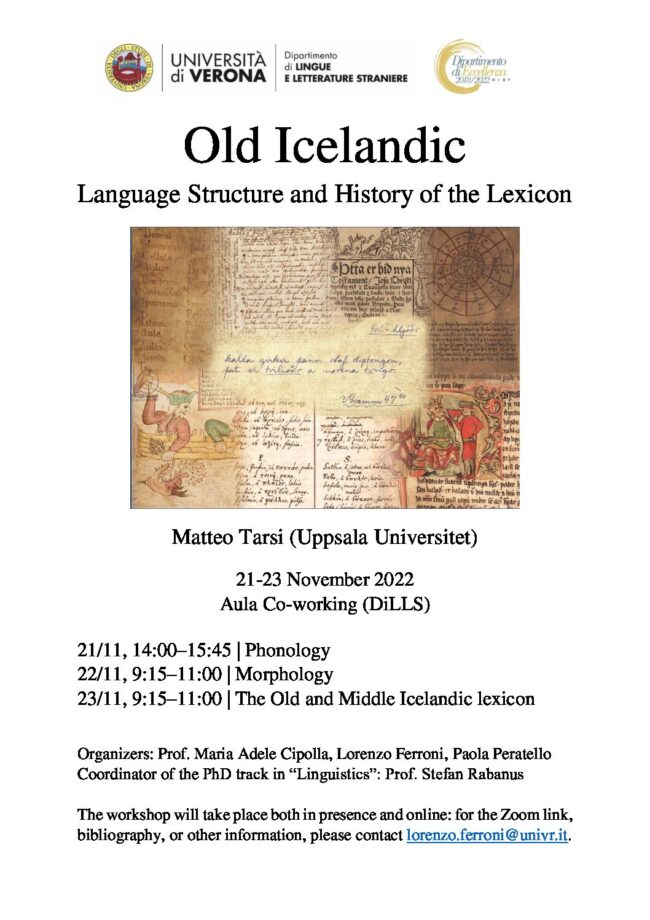 Winter School, Università Ca’ Foscari VeneziaIl mondo nordico medievale: lingue e testi Venezia, 16-20 gennaio 2023 Programma