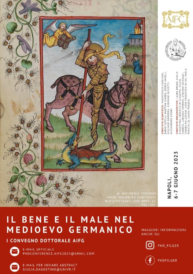Call for papers: I Convegno Dottorale AIFGIl bene e il male nel Medioevo germanico Napoli, 6-7 gugno 2023. Scadenza per la presentazione degli abstracts 30 gennaio 2023 CfP italianoCfP inglese